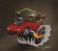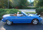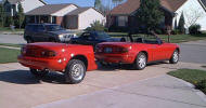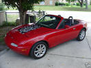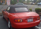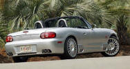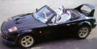 I'd wanted a Miata even before they were available. In fact, I had actually saved enough money to purchase one by the time they were introduced in July of 1989. But the dealers were being total jerks adding on huge markups pushing an affordable $14,000 to, in some cases, almost $20,000! And many new Miata owners really took advantage of the situation. Click the newspaper clipping to the right and look at some classified ads from the LA Times back in August 1989. One person was asking $40,000! (I sure hope he didn't get it!) Around the same time, I had the occasion to rent a 5.0 Mustang, which I enjoyed greatly. The Mazda dealers pissed me off so much, that I wound up purchasing a great 1987 Mustang convertible (which I owned for 18 years: see Mussy). In 1996, I once again started a search for a used Miata, but ran across a gorgeous, low-mileage '93 MR2. I've still got it. (MR2 page) In January 2004, somehow my wonderful wife agreed to let me have another toy and, once again, I started a search for a used Miata. After driving several, I stumbled into a dealer and asked if they had any killer deals on a leftover 2003. The guy pointed to a new Shinsen and said: "I can give you $7000 off the list price." Within a few hours, it was in my driveway. This was, without a doubt, the best car deal I ever got! The really funny thing is that I wound up paying less for my 2003 than I would have for a 1990 back when they were introduced in 1989! Weird how things come around, eh? The on-line Miata community is, to say the least, robust! I've learned quite a bit about the car and have "chatted" with Miata owners all over the world. miata.net has been a great resource as were the folks from of the Southern California Miata Club, SOCALM. (There is even a group/on-line club at Yahoo devoted to the Shinsen model of the Miata.) It sure is a great-looking little car, isn't it? And on the right road, in the right weather, I don't think there's anything more fun to drive. Any similarity of cars and occupants is purely coincidental! |